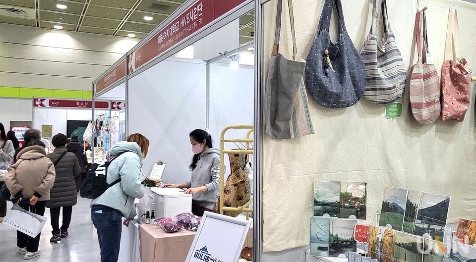 [한국대학신문 정수정 기자] 배화여자대학교(총장 신종석)는 종로구 컨소시엄의 누리고하이브(NULI古HiVE) 센터가 지난 19일부터 22일까지 서울 코엑스에서 진행되는 ‘K-핸드메이드페어 2024’에 참여했다고 전했다.