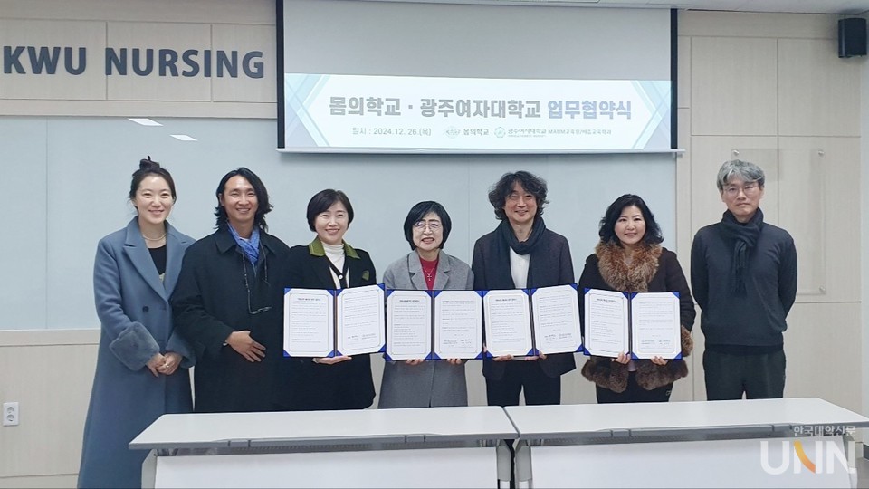 [한국대학신문 이정환 기자] 광주여자대학교(총장 이선재) MAUM교육원과 마음교육학과는 지난 26일 몸의 학교와 마음교육 활성화 및 상호 협력체계 구축을 위한 업무협약을 체결했다고 30일 밝혔다.