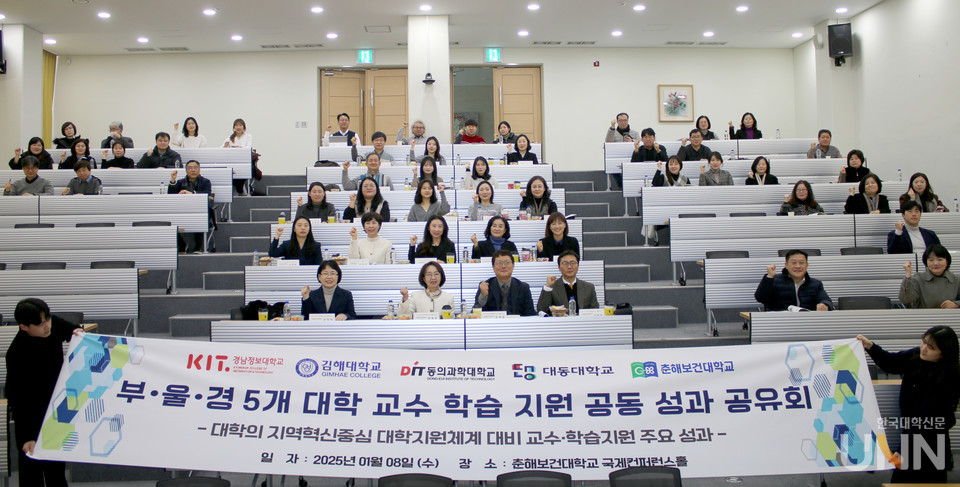 [한국대학신문 이정환 기자] 춘해보건대학교(총장 김희진) 교수학습지원센터는 8일 국제컨퍼런스홀에서 ‘부·울·경 지역 교수학습 공동 성과 공유회’를 성황리에 개최했다. 경남정보대학교, 김해대학교, 동의과학대학교, 대동대학교와 공동 주최한 이번 행사에는 각 대학 교직원 70여 명이 참석해 교육혁신 사례를 공유하고 지역혁신중심 대학으로서의 발전 방안을 모색했다.