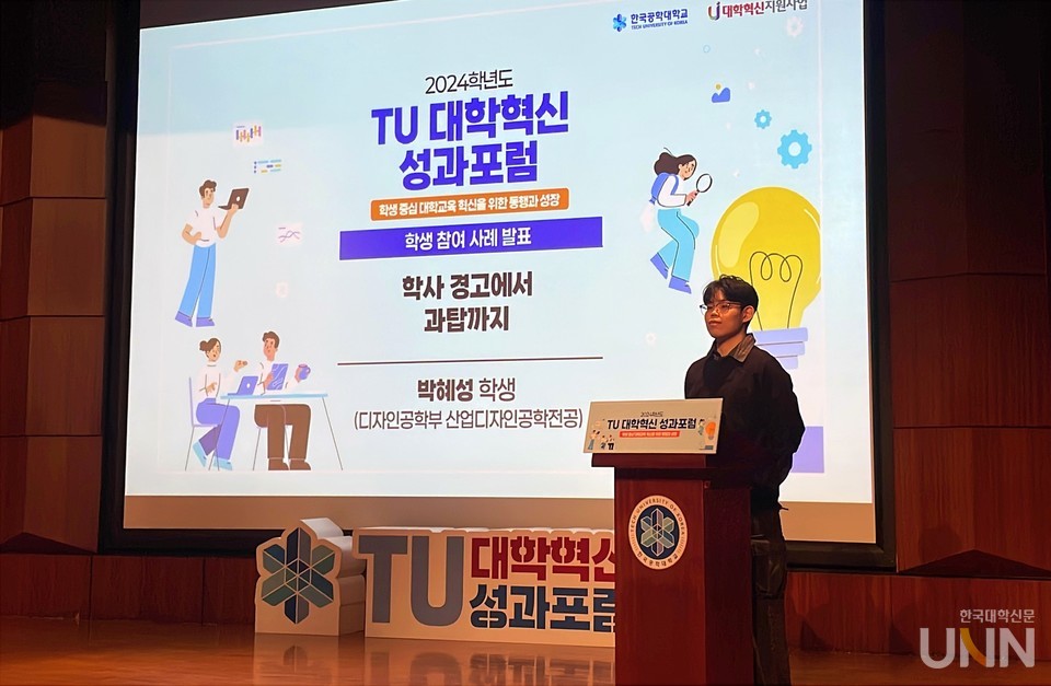 2부 학생 발표 세션에서는 2024 TU 학생 성공 우수사례 공모전에서 수상한 두 학생이 발표를 진행했다. 기계공학과의 김상혁 학생은 ‘나의 경험이 당신의 도전이 될 수 있기를’이라는 주제로 자신의 경험을 공유했고, 산업디자인공학전공의 박혜성 학생은 ‘학사 경고에서 과탑까지’라는 주제를 통해 자신의 학습 여정을 나누었다.