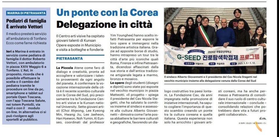 특히 학생들과 지도교수인 임영희 교수는 예술의 도시 피에트라산타에서 작품전시회를 개최해 페이트라산타시에서 발행하는 신문에 게재되는 등 현지에서 많은 관심을 받았다.