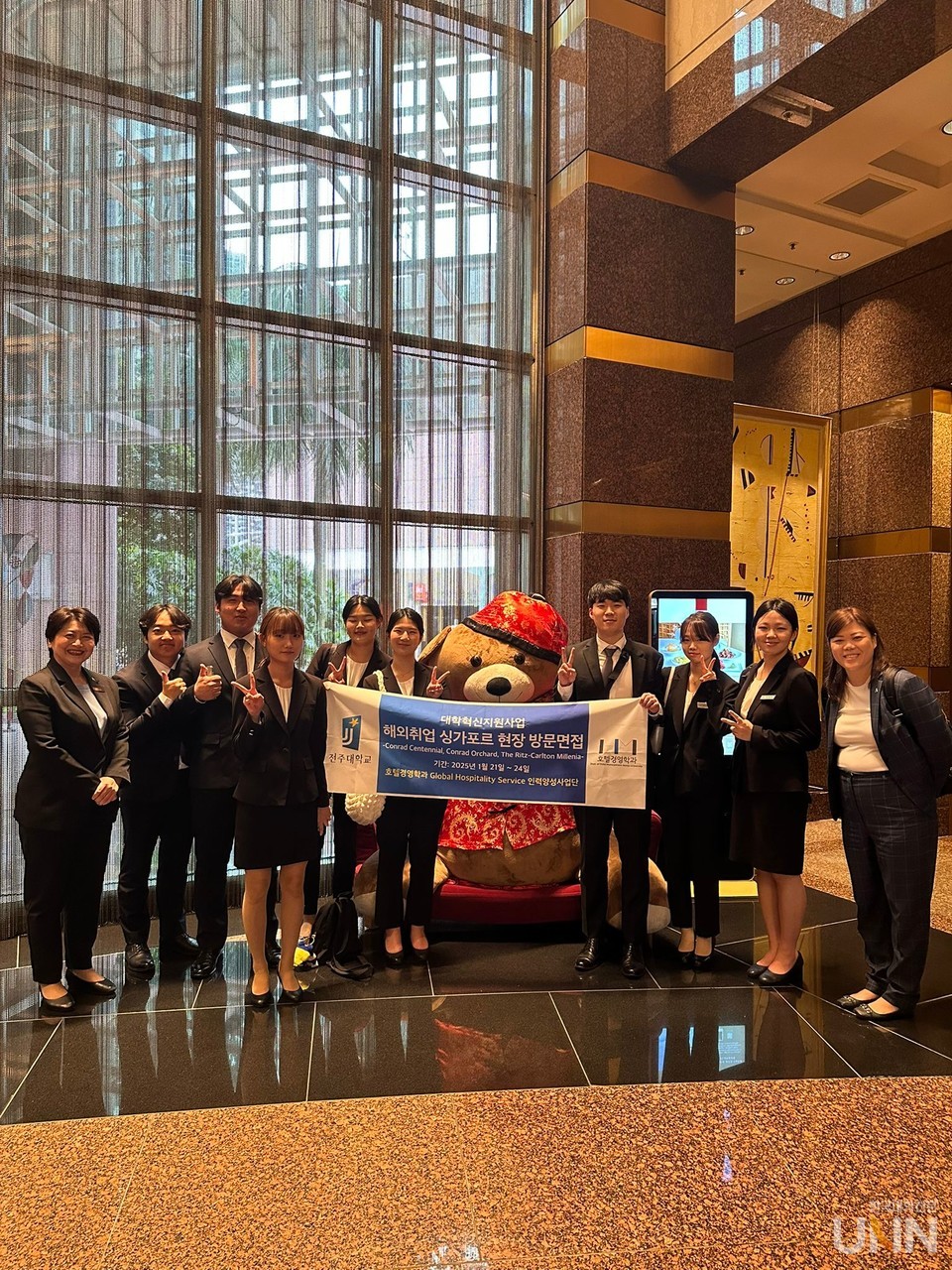 [한국대학신문 이정환 기자] 전주대학교(총장 박진배) 호텔경영학과는 싱가포르 5성급 호텔인 콘래드 센테니얼 호텔 4명 및 콘래드 오차드 호텔에 4명을 포함한 재학생 8명이 해외호텔 인턴십에 합격했다고 밝혔다.