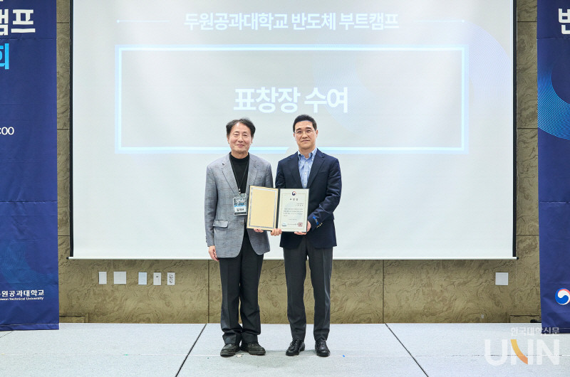 [한국대학신문 이정환 기자] 두원공과대학교(총장 임해규, 이하 두원공대) 반도체 부트캠프 사업단(이하 사업단)이 ‘반도체장비 SW설계’ 분야 마이크로디그리장 박철호 교수(모빌리티소프트웨어과)가 교육부 주관 ‘2024 첨단산업 인재양성 부트캠프 사업’에서 교육부 장관 유공 표창을 수상했다고 발표했다. 이는 2023년 사업단장의 수상에 이어 두 번째로 이루어진 쾌거이다.