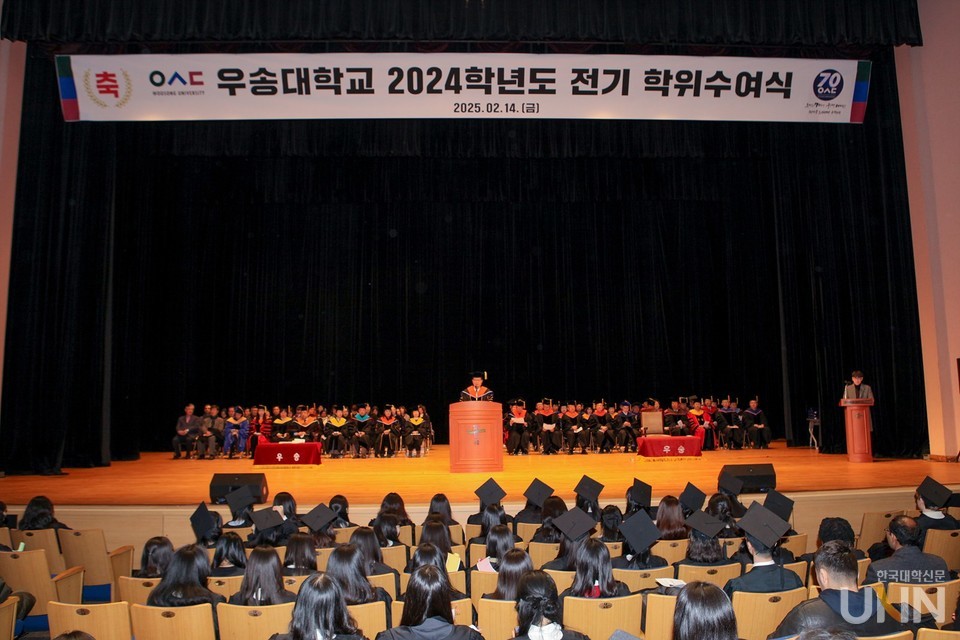 [한국대학신문 이정환 기자] 우송대학교(총장 오덕성)는 14일 학사 1626명, 석사 151명, 박사 21명 등 총 1798명을 대상으로 2024학년도 전기 학위수여식을 거행했다.