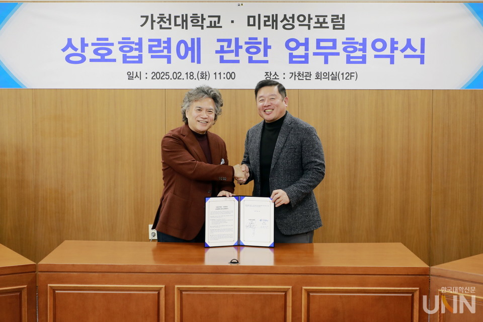 이날 MOU 체결식에는 가천대 서원식 대외협력처장, 미디어커뮤니케이션학과 이장석 교수와 미래성악포럼 양재무 대표가 참석했다.
