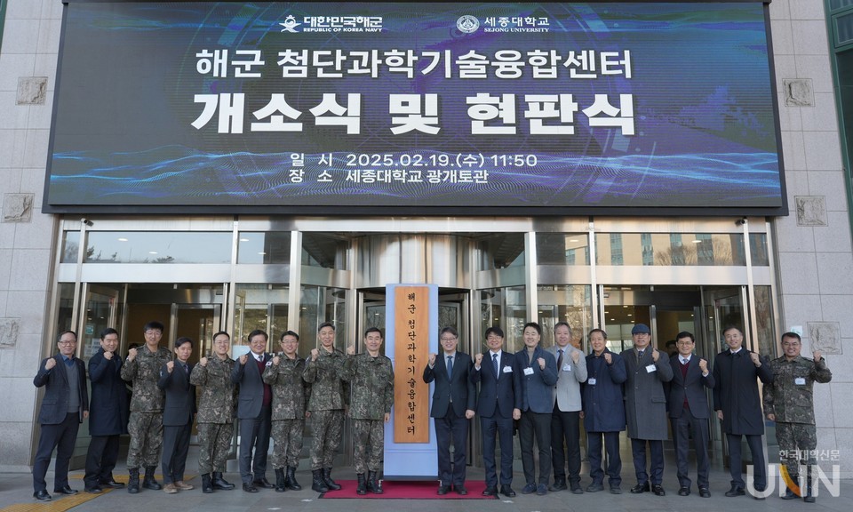 [한국대학신문 이정환 기자] 세종대학교(총장 엄종화)는 19일 대한민국 해군과의 산학연 첨단 과학기술 협력체계 구축 및 네트워크 확장을 위해 ‘해군 첨단과학기술융합센터(NATCC : Navy Advanced Technology Convergence Center)’를 개소하고 현판식을 개최했다.