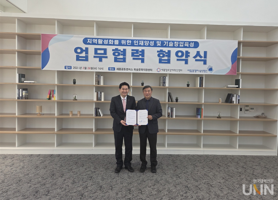[한국대학신문 이정환 기자] 세종창조경제혁신센터(대표이사 오득창)와 세종공동캠퍼스운영법인(이사장 한석수)는 26일 세종공동캠퍼스 학술문화지원센터에서 지역 활성화를 위한 인재 양성과 세종시 미래전략산업 기반 딥테크 기술창업 육성을 위한 업무협약(MOU)을 체결했다고 밝혔다.