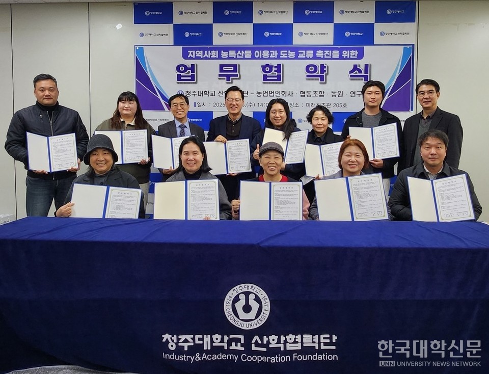 [한국대학신문 이정환 기자] 청주대학교(총장 김윤배) 산학협력단은 최근 학내 미래창조관에서 12개 농업회사 법인과 농상(農商)양성 표준교육과정 운영에 따른 수료생 사후관리와 지역사회 농특산물 이용 및 농촌교류 촉진을 위한 업무협약을 체결했다고 6일 밝혔다.