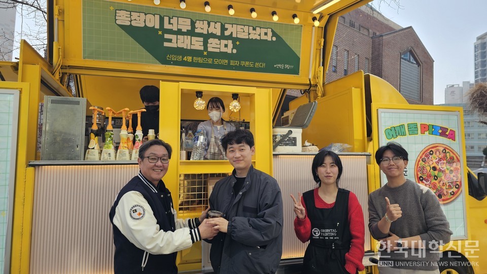 [한국대학신문 이정환 기자] 추계예술대학교(총장 임상혁)는 11일 2025학년도 개강을 맞이해 임상혁 총장과 대학혁신지원사업단 동아리 추비즘이 재학생을 대상으로 직접 음료와 피자를 제공하며 개별적으로 학생을 격려하는 시간을 가졌다.