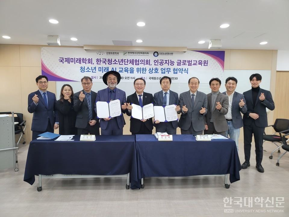 [한국대학신문 이정환 기자] AI 인류혁명 시대를 대비해 국제미래학회 인공지능 글로벌교육원은 국내 최대 청소년 단체인 한국청소년단체협의회와 11일 오전 서울 국제청소년센터에서 ‘청소년 미래 AI 교육을 위한 상호 협력 협약식’을 개최했다. 이번 협약을 통해 양 기관은 청소년 및 청소년 지도자의 AI 역량 강화를 위한 협력을 본격적으로 추진할 계획이다.