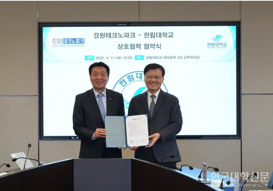 [한국대학신문 이정환 기자] 한림대학교(총장 최양희)는 11일 (재)강원테크노파크(원장 허장현)와 지역혁신과 산업발전을 위해 공유협업 체제 구축에 대한 양 기관의 상호발전을 도모하고 지산학협력 범위를 확대하기 위해 상호협력 협약을 체결했다.