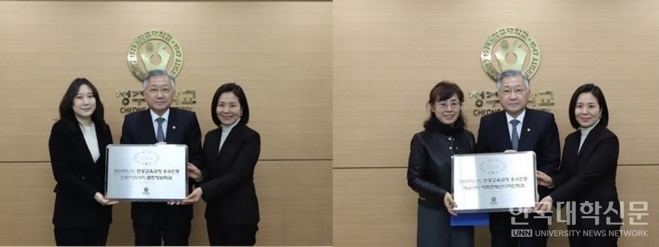 [한국대학신문 이정환 기자] 청주대학교(총장 김윤배)는 최근 2024학년도 전공교육과정 우수학과에 인문사회대학 문헌정보학과와 예술대학 아트앤패션디자인학과를 선정하고 교육환경 개선비 지원과 인증서 및 인증패를 수여했다고 13일 밝혔다.