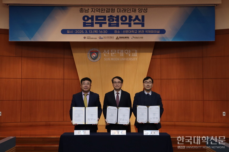 [한국대학신문 이정환 기자] 선문대학교(총장 문성제)는 13일 선문대 국제회의실에서 충남 지역의 인공지능(AI) 및 소프트웨어(SW) 미래 인재 양성을 위한 업무협약을 체결했다고 밝혔다.