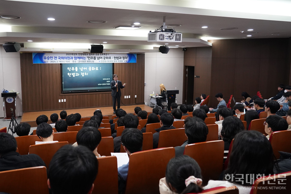 이날 특강에 참석한 인천대 법학부 한희강 학생은 “인간미가 느껴지는 정치인과 만남이 이루어져 좋았고, 오늘날 우리 한국 사회에 대해 진지하게 관찰하고 나름의 해법에 대해 고민할 수 있었던 계기가 되어 너무 유익했다”고 소감을 밝혔다.