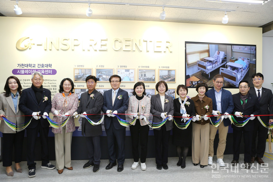 [한국대학신문 이정환 기자] 가천대학교(총장 이길여) 간호대학이 20일 혁신적인 간호 실무교육을 통해 차세대 간호인재를 양성하기 위한 G-Inspire 시뮬레이션 교육센터 개소식을 했다. G-Inspire는 Gachon Innovative Nursing Simulation for Practice, Integration, Readiness, and Excellence의 약자로, 학생들이 실습을 통해 지식과 기술을 통합하고, 간호사로서의 준비와 전문가로서의 수월성을 갖출 수 있도록 지원하는 교육 방향성을 담고 있다.