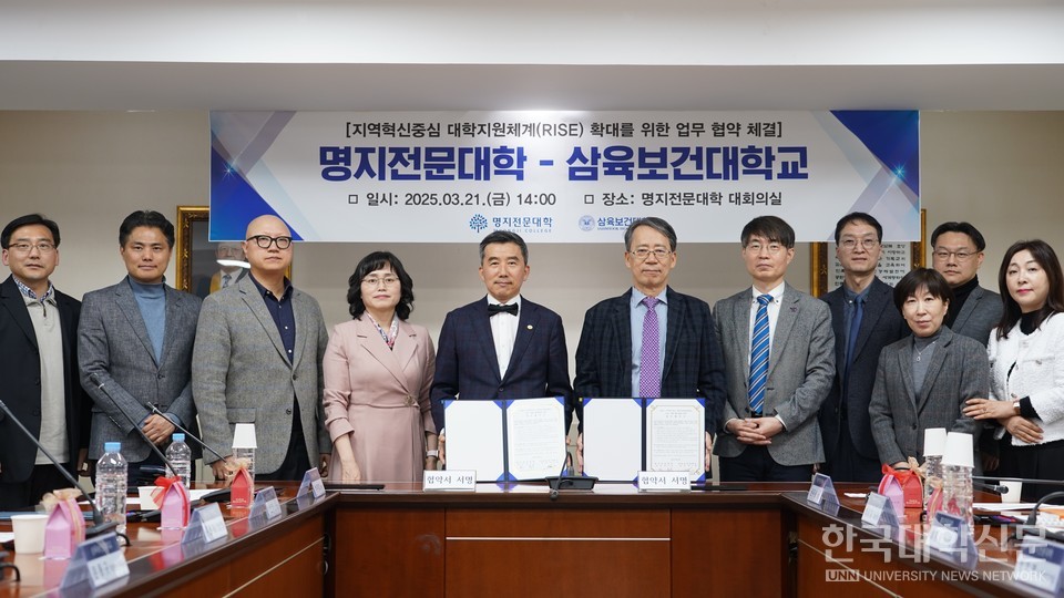 [한국대학신문 이정환 기자] 삼육보건대학교(총장 박주희)와 명지전문대학(총장 권두승)이 서울시가 주관하는 지역혁신중심 대학지원체계(RISE) 사업의 성공적인 추진을 위해 손을 맞잡았다.