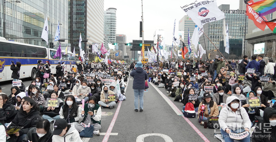 윤 대통령의 탄핵심판 선고가 금주에도 열리지 않은 가운데 '윤석열 퇴진...비상행동'은 이 날 광화문 광장에서 '전국 시민 총파업 집회'를 개최하고 윤 대통령의 조속한 탄핵을 헌법재판소에 촉구했다.