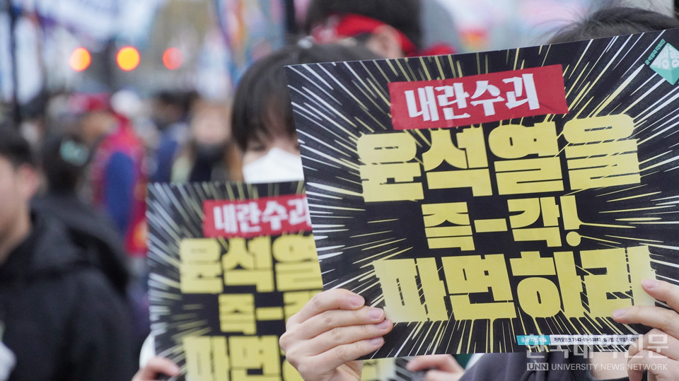 [한국대학신문 한명섭 기자] 서울 도심과 광화문 일대가 27일 오후 윤석열 대통령 탄핵을 촉구하는 시민들의 행진과 대규모 집회로 혼잡을 빚었다.