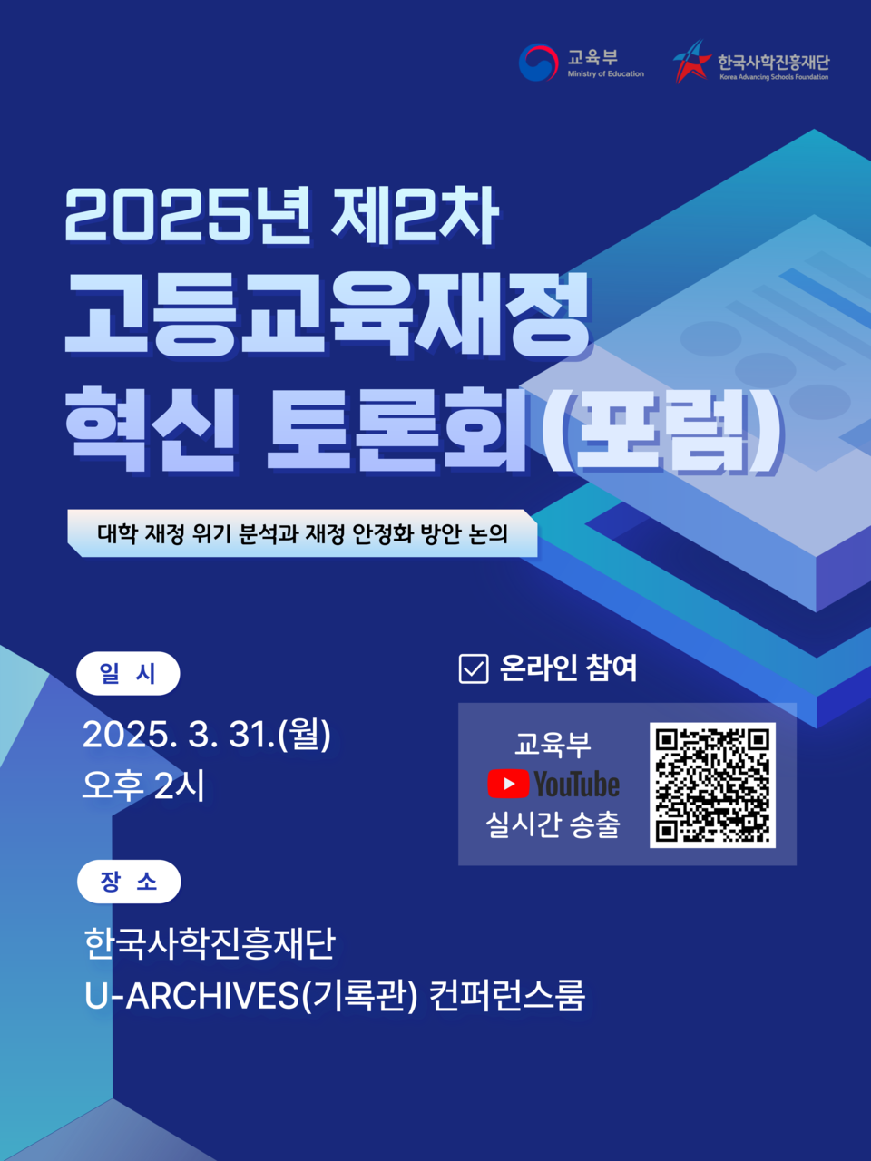 이번 행사는 온라인으로 생중계되며, 고등교육재정에 관심이 있는 국민은 누구나 참여할 수 있다.