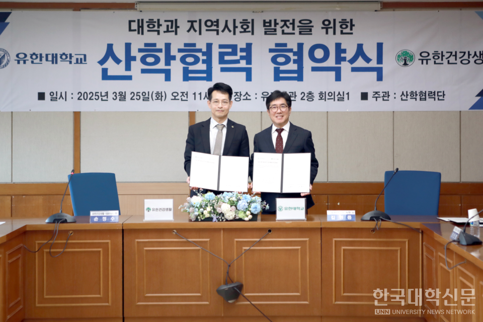 [한국대학신문 김영성 기자] 유한대학교(총장 김현중)는 지난달 25일 유재라관 2층 회의실에서 유한건강생활과 지역사회 발전 및 미래인재 양성을 위한 산학협력 협약을 체결했다고 밝혔다.