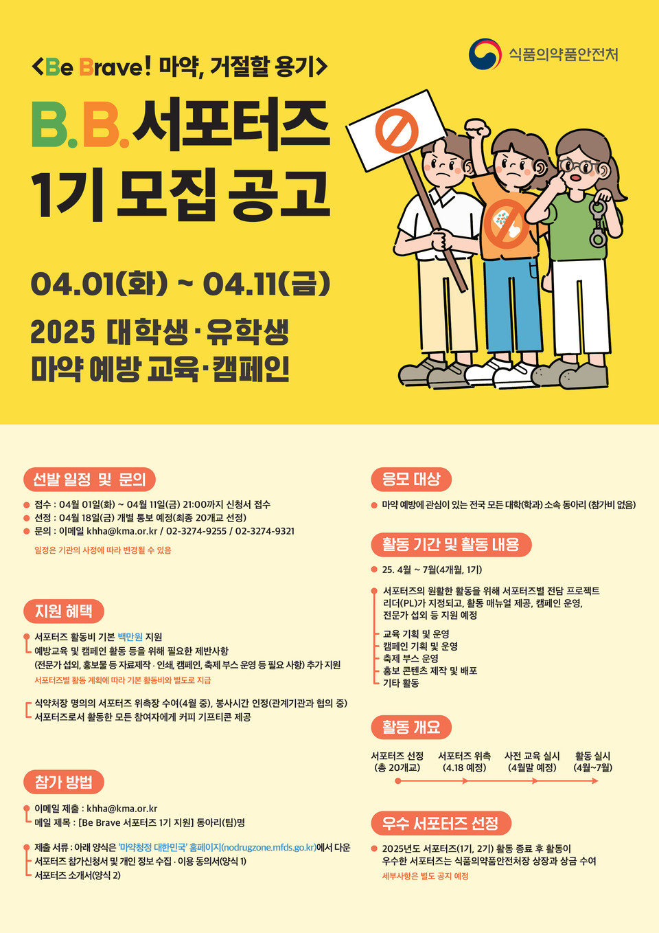 식품의약품안전처, 마약 예방활동 동아리 ‘Be Brave 서포터즈’ 모집