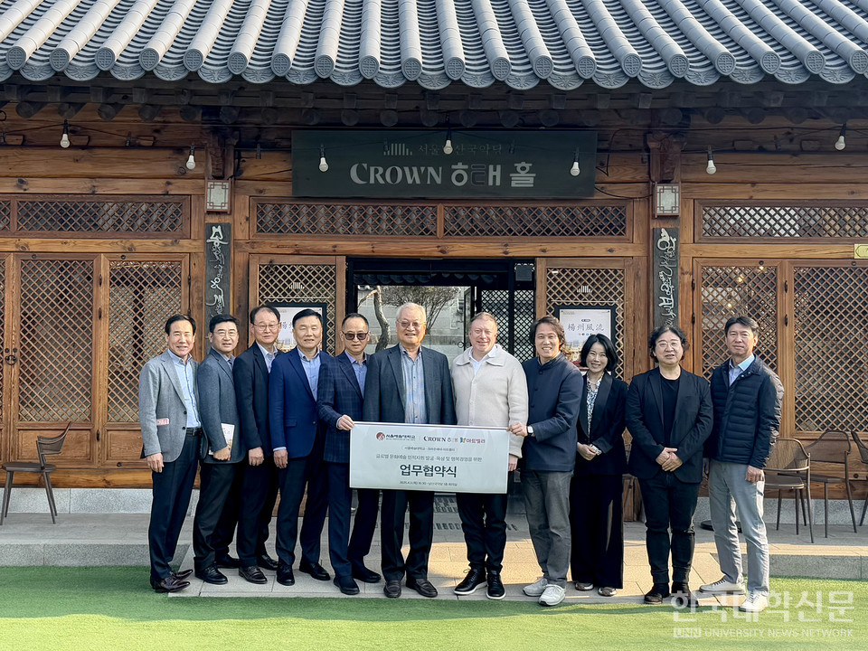 [한국대학신문 심정은 기자] 서울예술대학교(총장 유태균)와 제과전문그룹 크라운해태(회장 윤영달)가 3일 서울남산국악당 1층 회의실에서 업무협약(MOU)을 체결했다. 이번 협약을 통해 양 기관은 전통문화 및 국악 예술의 발전과 문화 콘텐츠 제작을 위한 협력을 강화하기로 합의했다.