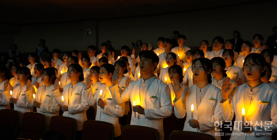 [한국대학신문 김윤미 기자] 상지대 간호학과(학과장 이꽃메)는 4일 민주관 3층 강당에서 ‘나이팅게일 선서식’을 개최했다.