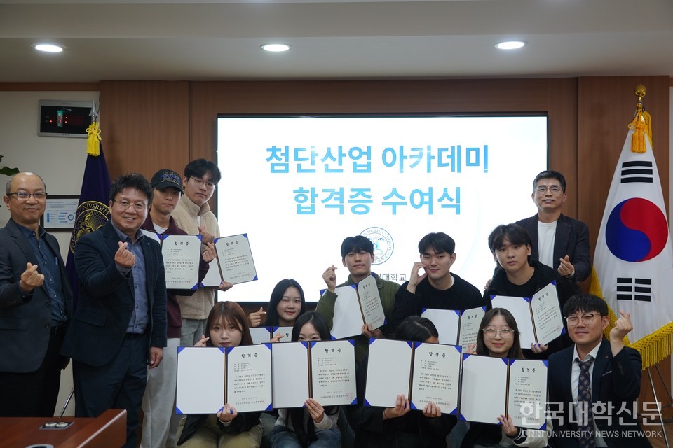 이날 수여식에는 김경목 센터장과 이준혁 교수가 격려사와 축사를 전하며, 인재 양성을 위한 대학의 의지와 첨단산업 아카데미의 비전을 강조했다. 김 센터장은 “첨단산업 분야는 국가 경쟁력의 핵심이며, 이를 위해 현장 중심의 교육이 무엇보다 중요하다”며 “학습근로자들이 기업 현장에서 바로 성과를 낼 수 있도록 아낌없이 지원하겠다”고 밝혔다. 이준혁 교수는 “기술 변화 속도를 따라가려면 단순한 지식 전달을 넘어선 문제 해결 능력이 필요하다”며, “이번 아카데미 과정은 그 출발점”이라고 말했다.