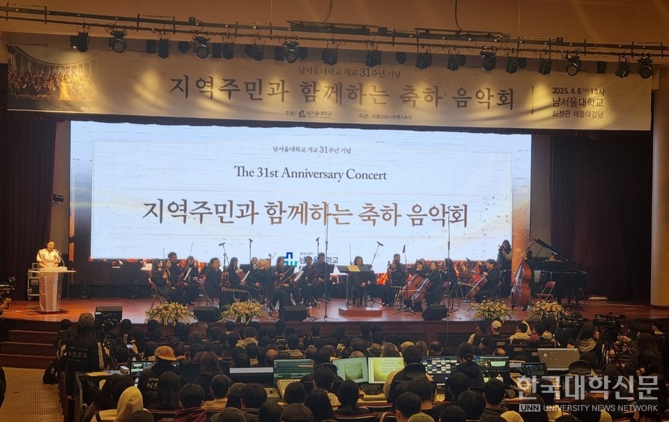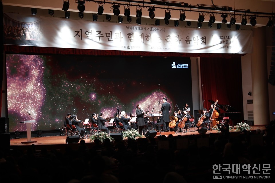[한국대학신문 김윤미 기자] 남서울대학교(총장 윤승용)는 8일 본교 화정관에서 ‘개교 31주년 기념 지역 주민과 함께하는 축하 음악회’를 성황리에 개최했다. 이번 음악회는 남서울대가 지역 사회와의 유대를 강화하고 그동안 대학의 발전을 성원해온 지역 주민들에게 감사의 마음을 전하고자 기획된 행사다.