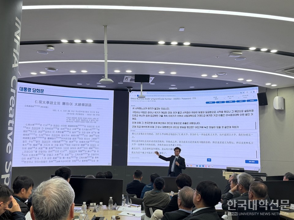 인하대 60주년 기념관에서 열린 특강에는 조명우 인하대 총장이 ‘인천, 하와이, 인하대 70년’을 주제로 강의를 펼쳤다. 조명우 총장은 올해로 개교 71주년을 맞은 인하대의 태동이 ‘하와이 이민’에서 시작됐다고 소개하며 인하대 역사와 인천, 하와이의 연관성에 대해 강조했다.