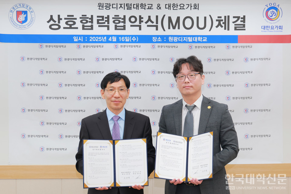 [한국대학신문 이용현 기자] 원광디지털대(총장 김윤철)는 16일 서울캠퍼스에서 사단법인 대한요가회(회장 강승진)와 요가 분야의 교육협력 강화를 위한 단체협약(MOU)을 체결했다고 17일 밝혔다.