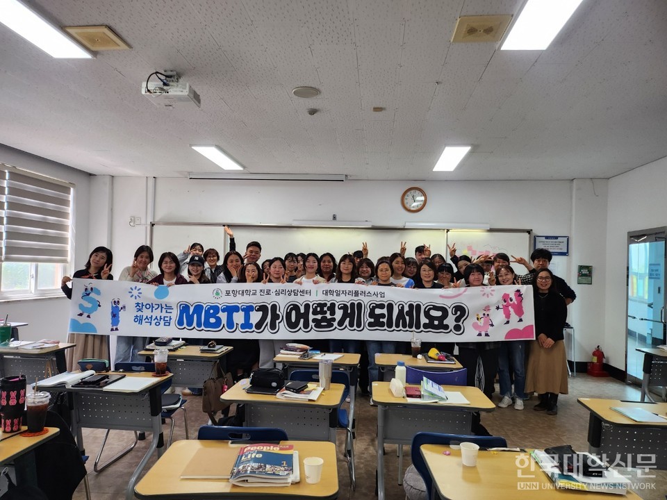 [한국대학신문 정수정 기자] 포항대학교(총장 하민영) 진로·심리상담센터는 지난달 26일부터 4월 18일까지 재학생을 대상으로 MBTI를 활용한 ‘찾아가는 해석상담 프로그램’을 운영했다.