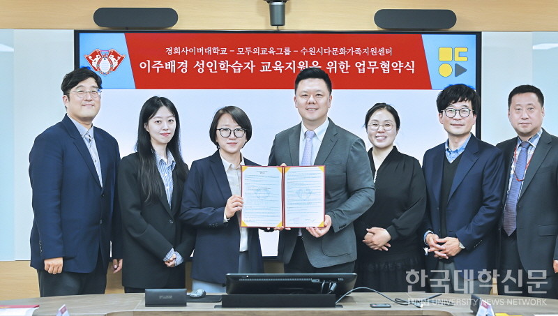 [한국대학신문 김연주 기자] 경희사이버대학교(총장 변창구)는 지난 21일 외국인 및 다문화가정의 안정적인 한국 정착과 고등교육 기회 확대를 위해 HRD 전문기관 모두의교육그룹(대표 이영신) 및 수원시다문화가족지원센터(센터장 유경선)와 업무협약을 체결했다.
