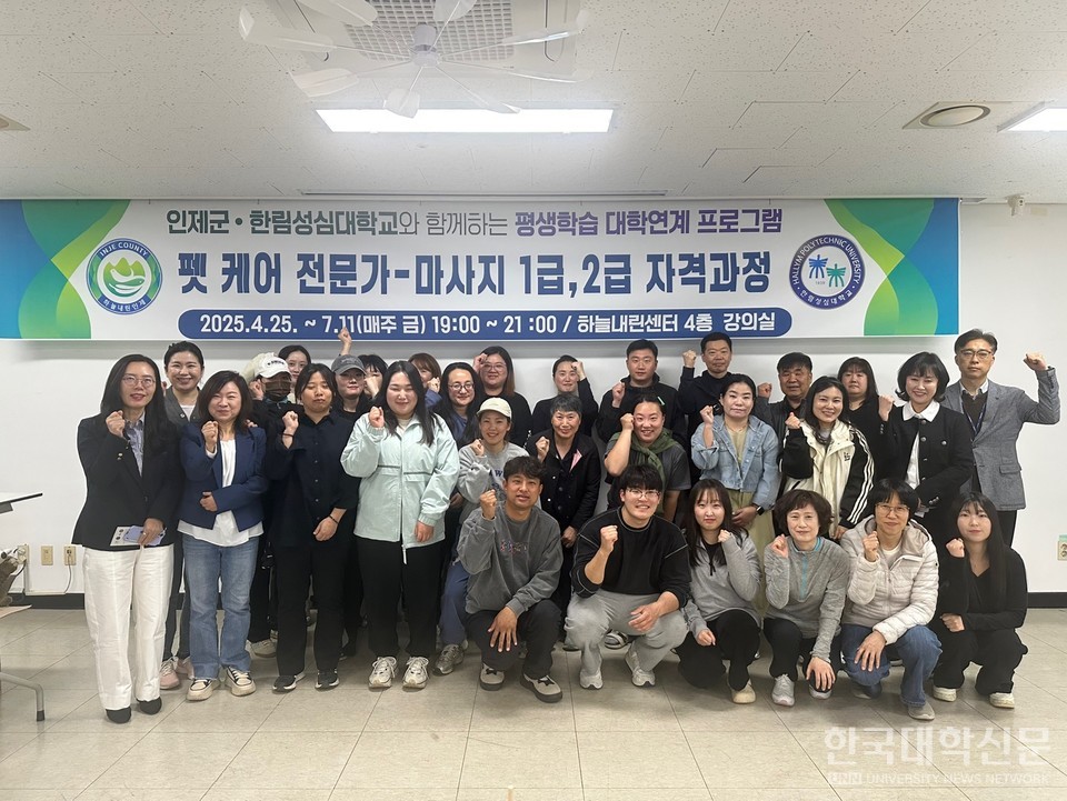 한림성심대 직업평생교육원에서는 인제군으로부터 3000만원을 지원받아 반려동물 자격 과정(펫 케어 전문가 마사지1급/2급), 전통주 마스터 과정, 부동산 자산관리전문가 1급 자격 과정을 7월까지 운영하게 되며, 하반기 프로그램으로 티소믈리에 자격 과정과 토의·토론지도사 과정이 운영될 예정이다.