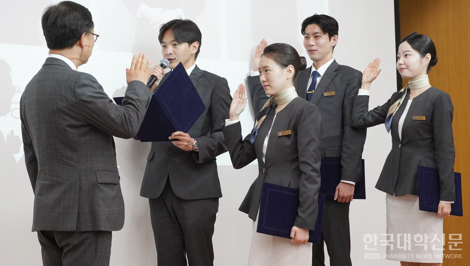 [한국대학신문 한명섭 기자] 학과 설립 5주년을 맞은 인덕대 글로벌항공서비스학과가 30일 교내세미나실에서 제5회 윙 수여식을 했다.