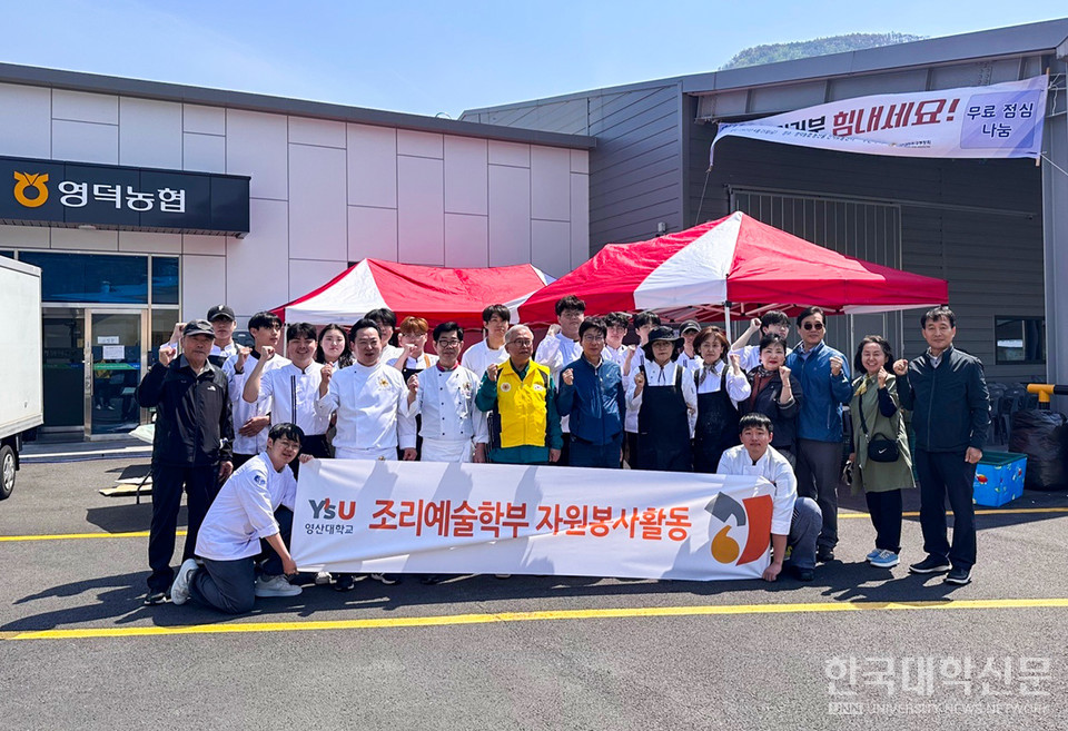 [한국대학신문 김연주 기자] 와이즈유 영산대학교(총장 부구욱) 동양조리전공이 산불피해를 입은 주민들을 위로하기 위해 지난달 25일 경북 영덕군 지품면사무소를 찾아 짜장면 1000인분을 무료로 제공했다.