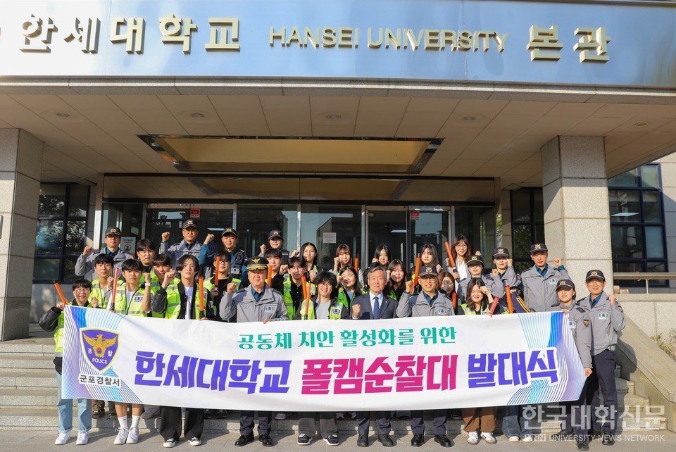 [한국대학신문 이정환 기자] 한세대학교(총장 백인자)는 경찰행정학과(학과장 이성대)를 중심으로 지난달 29일 군포경찰서와 ‘폴캠순찰대’ 발대식을 학교 본관에서 개최하고 캠퍼스 주변 합동 순찰을 시행했다.
