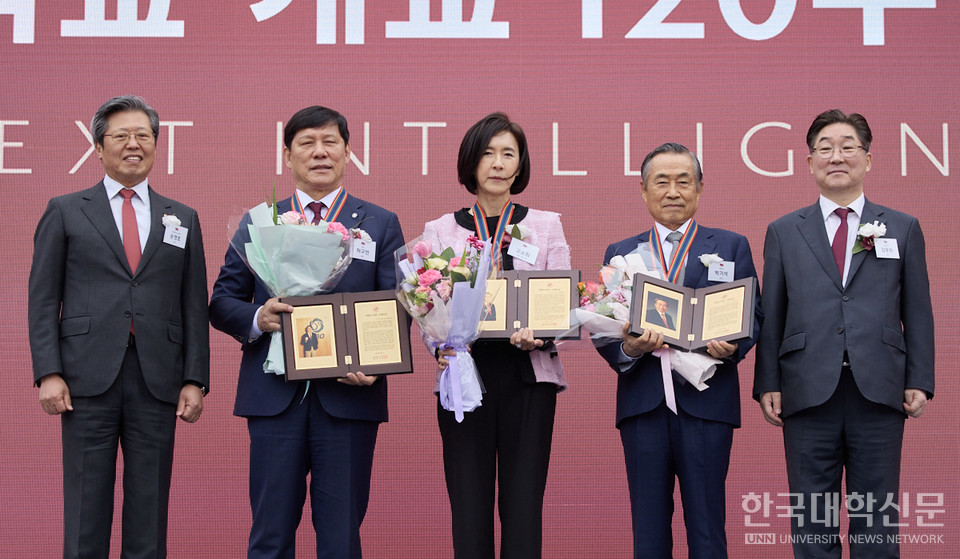 [한국대학신문 이정환 기자] 고려대학교(총장 김동원)는 고려중앙학원(이사장 김재호), 고려대 교우회(회장 승명호)와 함께 5일 오전 서울캠퍼스 인문계 중앙광장에서 ‘개교 120주년 기념식’을 개최했다.
