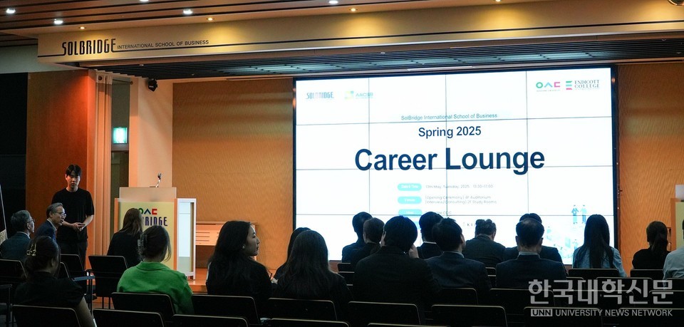 [한국대학신문 박인규 기자] 우송대학교(총장 오덕성) 솔브릿지국제경영대학은 13일 학생들의 취업 지원을 위한 채용박람회인 ‘2025 Career Lounge’를 개최했다고 밝혔다. 이날 행사에는 솔브릿지와 엔디컷국제대학 재학생 100여 명이 참가했다.