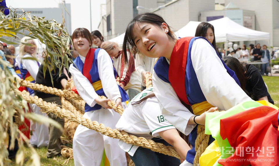 교내 잔디광장에서 열린 영산줄다리기는 총학생회와 영산줄다리기보존회가 매년 이화여대 대동제에서 함께 시연하며 맥을 이어가는 전통 행사.