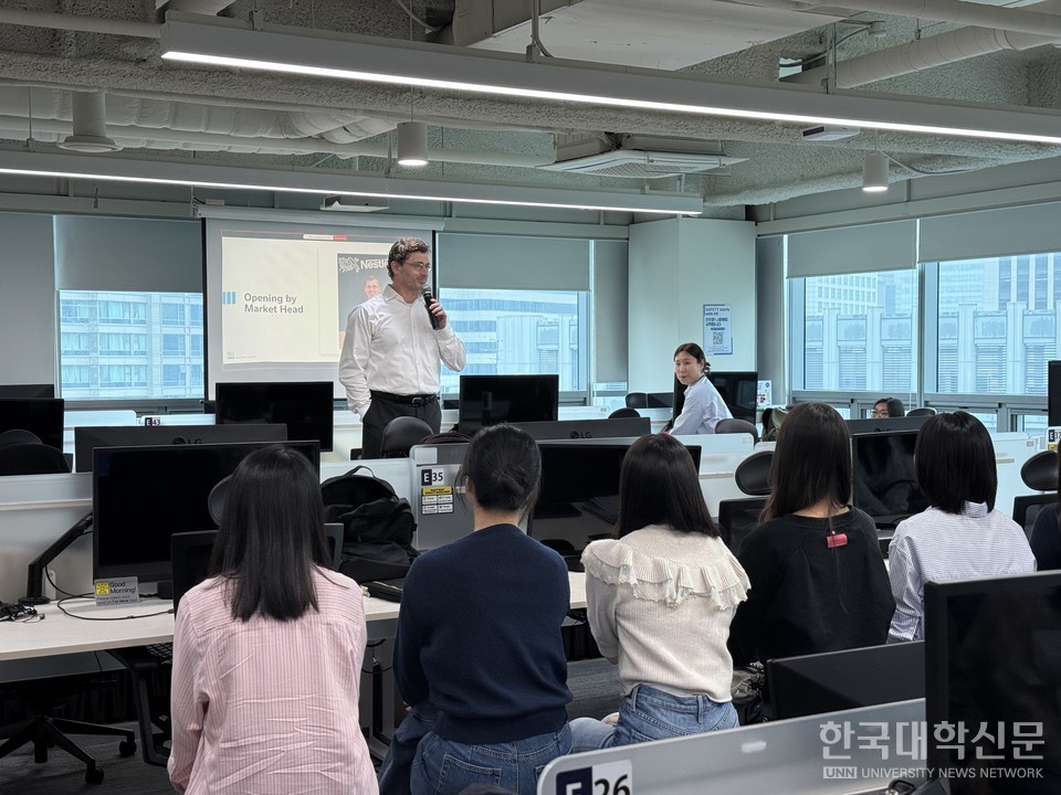 이날 수강생 45명은 경영학부 이신형 교수와 대학일자리플러스센터 인솔 아래 서울 서대문구 네슬레코리아 본사에 방문했다. 학생들은 토마스 카소 네슬레코리아 대표의 환영 인사를 시작으로 DEI(다양성·형평성·포용성) 정책과 청년 인재 육성 프로그램에 대한 소개를 들었다. 이어 네슬레코리아 전 직원이 참여하는 현직자 패널토크와 부서별 멘토링이 진행됐다. 학생들은 현직자들과 직접 소통하며 글로벌 기업의 조직 문화와 업무 수행방식을 배우는 뜻깊은 기회를 가졌다.