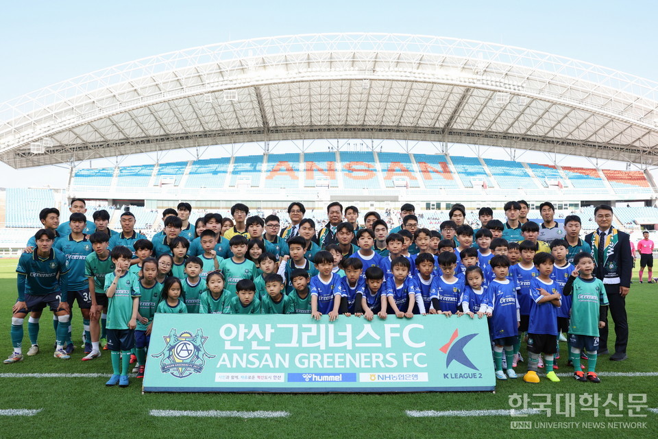 [한국대학신문 이정환 기자] 안산대학교 장애학생지원센터(센터장 김병철)는 지난 18일 안산 와~스타디움에서 펼쳐진 하나은행 리그2 12라운드에서 ‘안산그리너스FC 해피너스’ 창단식을 진행했다고 밝혔다. 안산대학교와 안산그리너스FC가 장애인과 비장애인 함께 뛰는 ‘안산그리너스FC 해피너스’를 공식 창단하며 포용적 축구 문화를 향한 첫 발을 내딛었다.