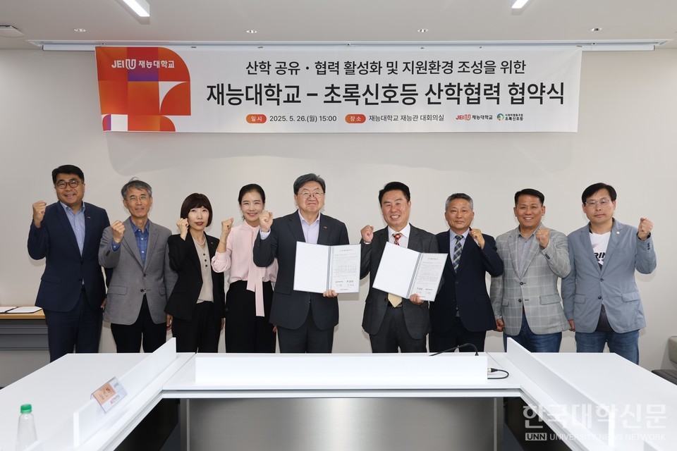 [한국대학신문 김영성 기자] 재능대학교(총장 이남식)는 26일 사회적협동조합 ‘초록신호등’과 취업 지원 및 일자리 창출을 위한 업무협약을 체결했다.