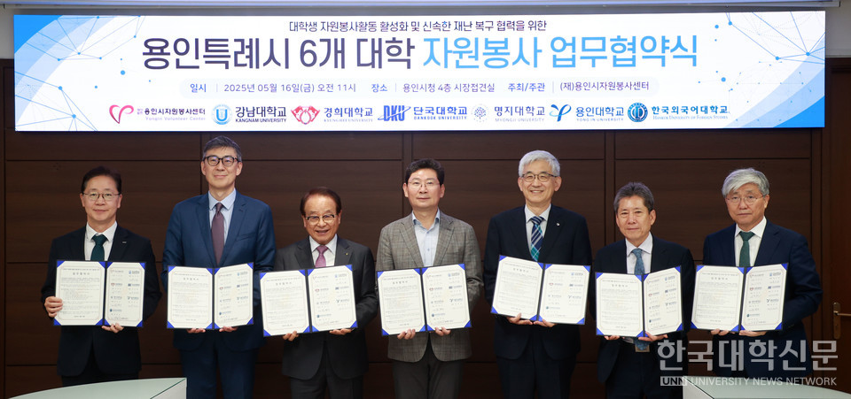 협약식에는 명지대를 비롯한 단국대, 경희대, 용인대, 한국외대, 강남대 등 용인지역 6개 대학 관계자와 용인시자원봉사센터 관계자들이 참석했다.