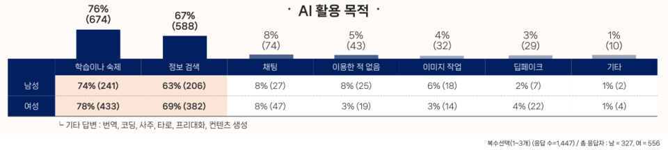 응답자 다수 ‘AI는 학습·숙제용’… 대입 정보 검색 활용도 낮아