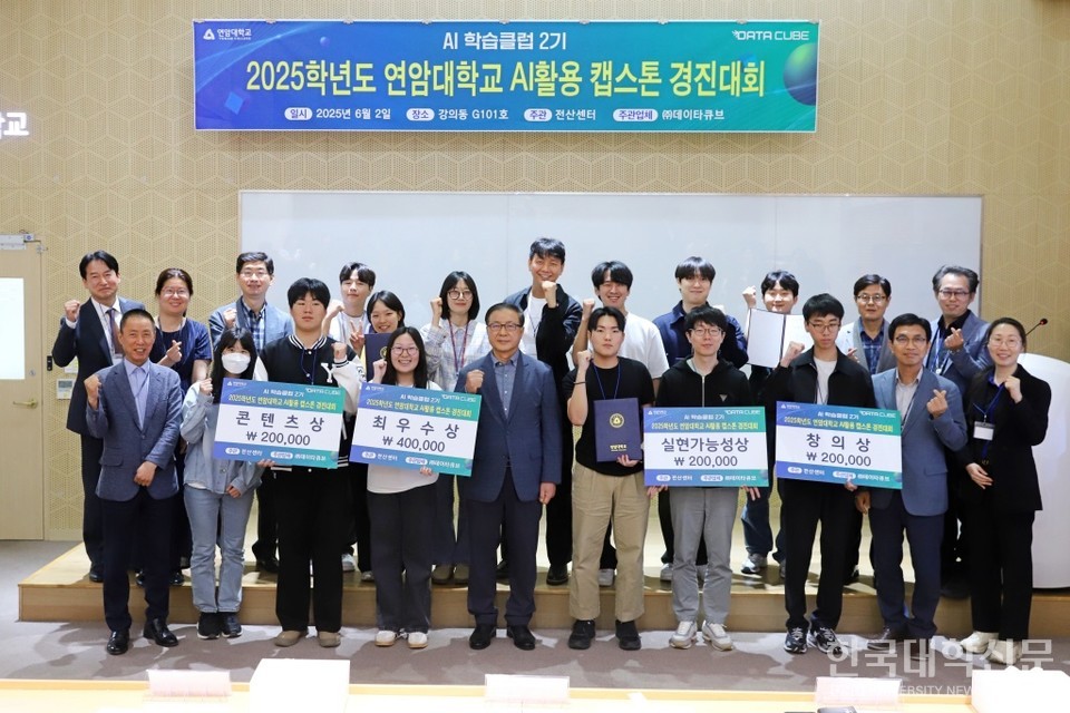 [한국대학신문 이서혜 기자] 연암대학교(총장 육근열)는 최근 강의동 세미나실에서 ‘2025학년도 연암대학교 AI활용 캡스톤 경진대회’를 개최하고 ‘AI 학습클럽 2기 과정’을 성공적으로 마무리했다고 5일 밝혔다.