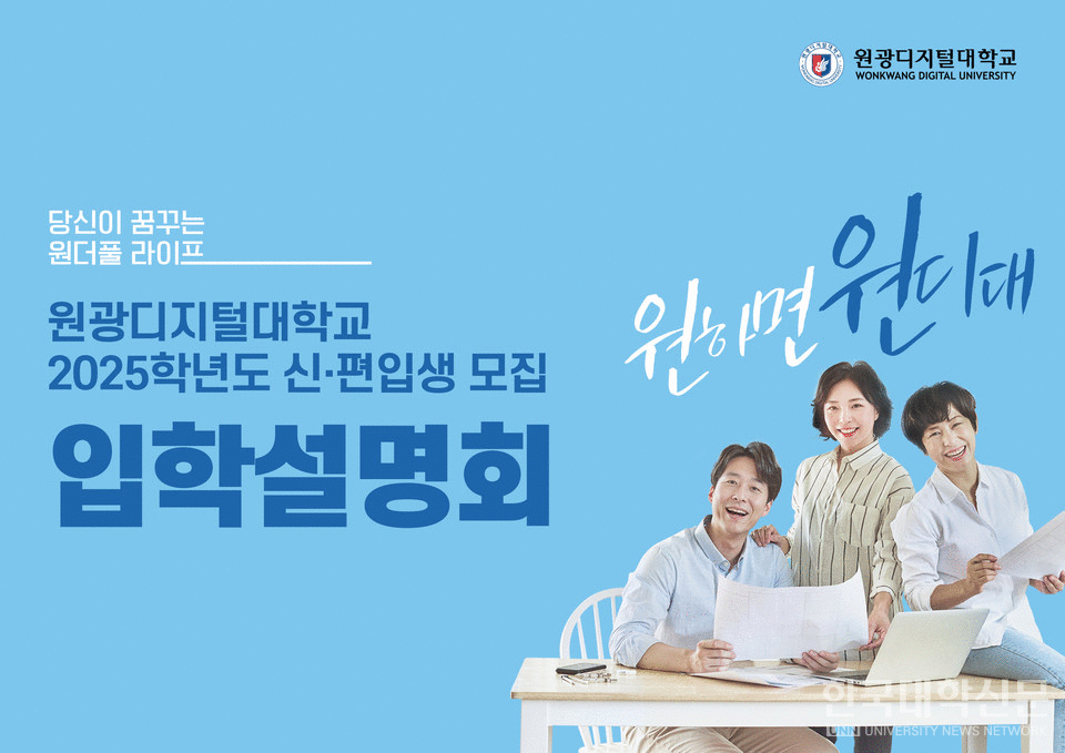 [한국대학신문 이정환 기자] 원광디지털대(총장 김윤철)가 오는 11일과 12일 양일간 2025학년도 2학기 1차 온라인 입학설명회를 개최한다.
