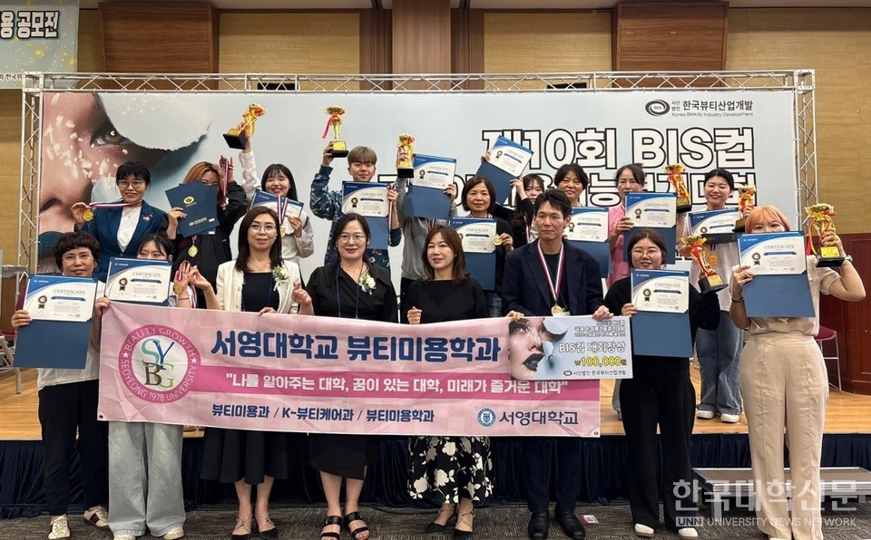 [한국대학신문 심정은 기자] 서영대학교는 최근 K-뷰티케어과(야간) 재학생 17명이 김대중컨벤션센터에서 열린 ‘제10회 BIS컵 국제이·미용기능경기대회’에서 헤어, 이용, 피부, 네일 등 전 부문에 참가해 대회장상, 금상, 은상 등을 전원이 수상했다고 8일 밝혔다.