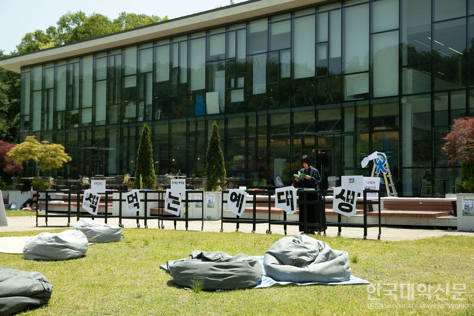 ‘책 먹는 예대생’은 예술대학생들이 과제와 작업에 쫓기는 일상 속에서 잠시 멈추고, 책을 통해 예술적 감수성과 사유를 회복하는 기회를 제공하기 위해 마련됐다. 잔디밭 위 빈백과 돗자리에서 자유롭게 책을 읽는 방식으로 운영된 이 프로그램에는 약 130권의 도서가 비치됐으며, 이 중에는 도서관 추천 도서 75권을 비롯해 책마을해리, 아르케 교양학부, 학생·소수자권리위원회 ‘잡초’, 그리고 학생들의 자체 큐레이션 도서도 포함됐다.