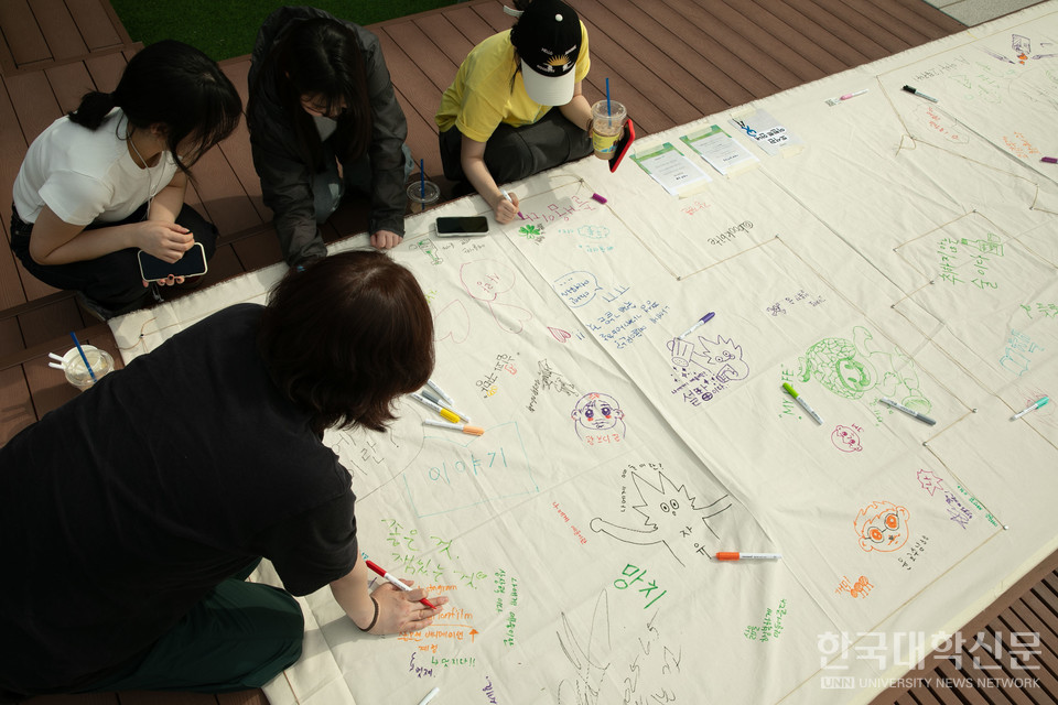 [한국대학신문 심정은 기자] 계원예술대학교(총장 김성동) 광고브랜드디자인학과가 지난 4일과 5일 양일간 파라다이스홀 잔디밭에서 진행한 ‘책 먹는 예대생’ 캠페인을 성황리에 마무리했다. 이번 캠페인은 김윤경 교수의 ‘컨셉스토리텔링’ 수업의 일환으로 전공심화 2학년 학생들이 직접 기획하고 운영한 프로젝트다. 참여 학생은 손가빈, 박고은, 박서연, 서하진, 윤서원, 정여빈, 정준호, 한재문 등 총 8명이다.